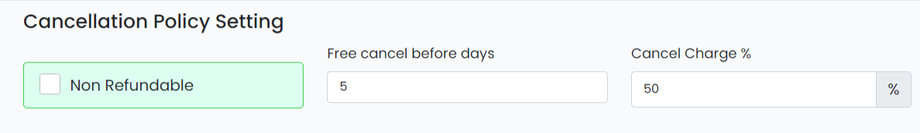 Cancellation Charges – Add a number of percentages (For example, 20%, 30%, 40%, etc)