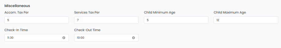(For Example, Tax details, child minimum & Maximum Age, Check-in & Check-Out Time)