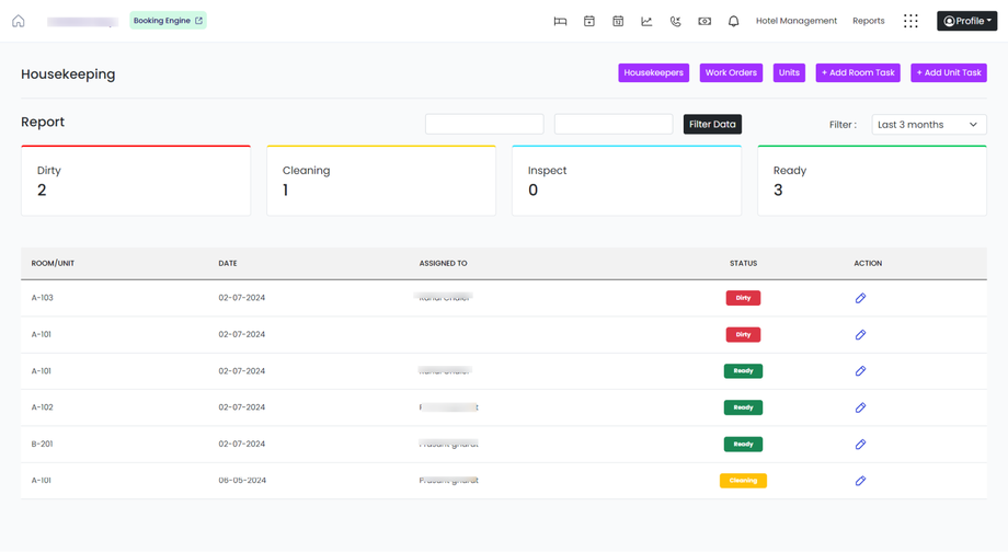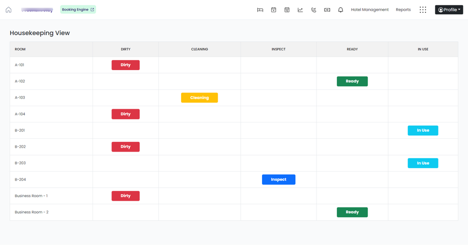 - Open the Housekeeping dashboard to see a list of rooms and their statuses.