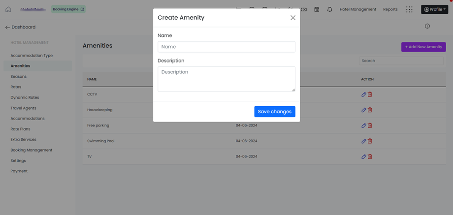 Step 1: Click on “ Amenity” in "Hotel Management" or Use the below link