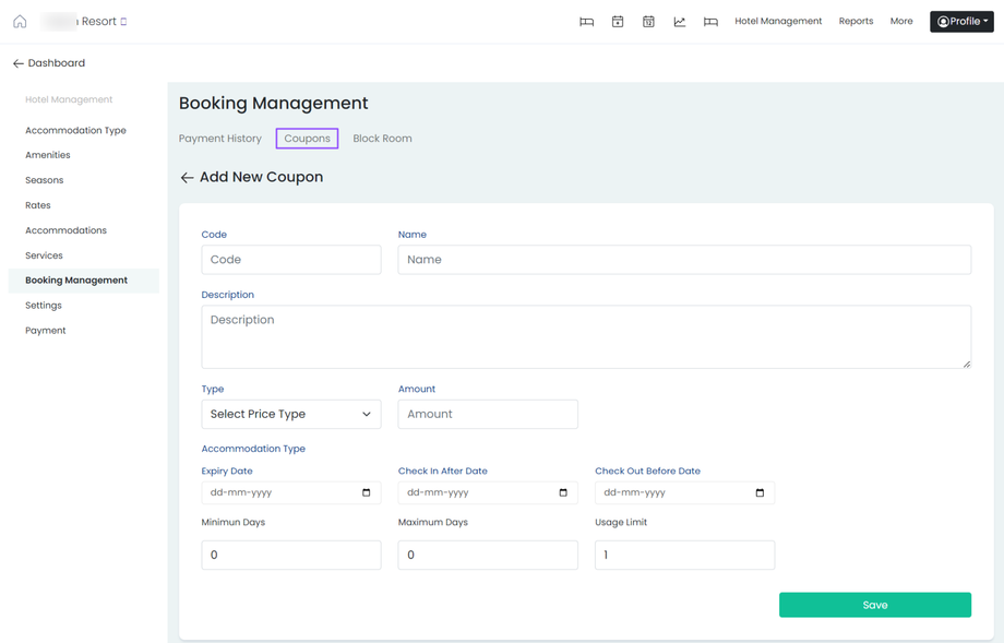 Coupons can attract customers during specific seasons, holidays, or promotional periods. By providing coupons, you can incentivize guests to choose your accommodation type over others and increase bookings.