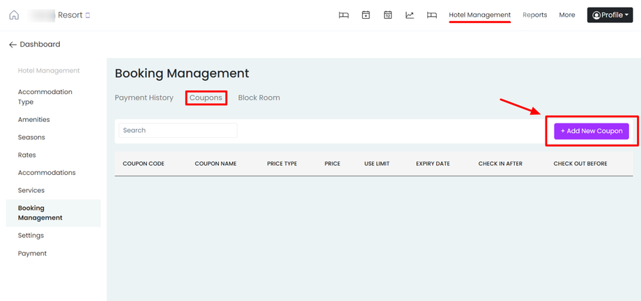 To add discount coupons for your hotel booking on HotelWeb Property Management System, You need to