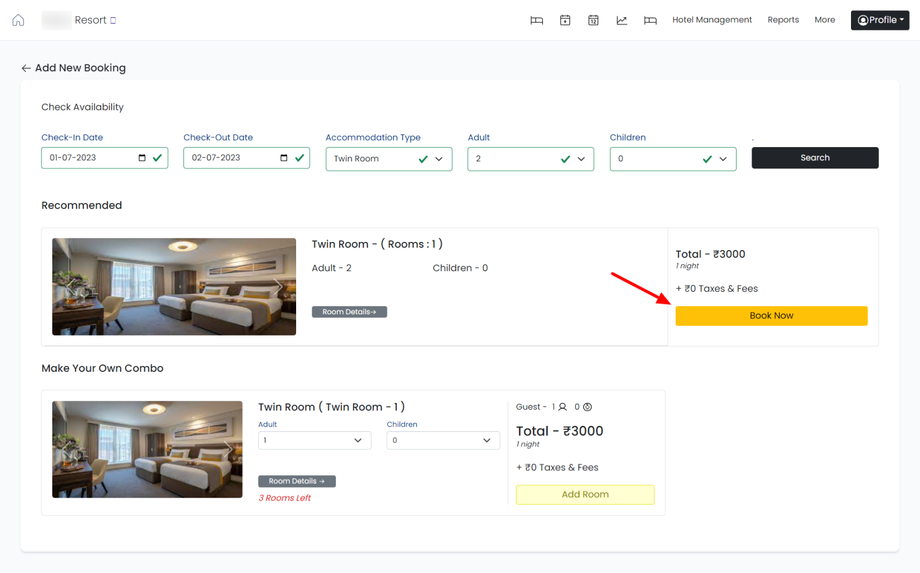 - Room Type: Choose the type of room or accommodation the guest requests.