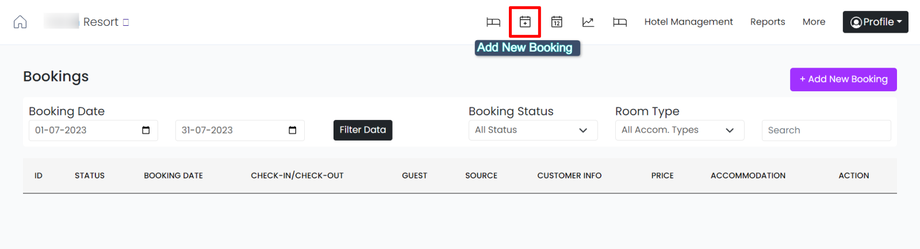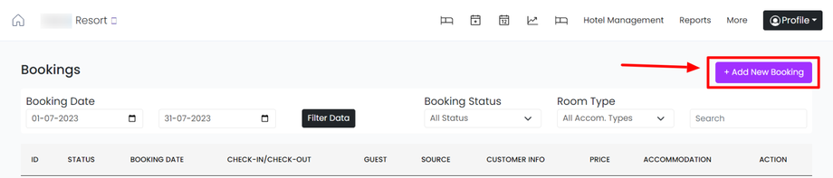 Step 3: To Add New Booking manually you need to click on the "Add New Booking button". Check out the below image for a better understanding.