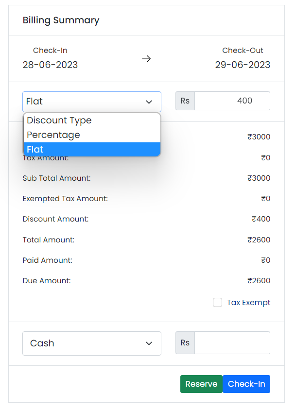 Step 12: To Add a discount, select “Discount Type” (Percentage or Flat)